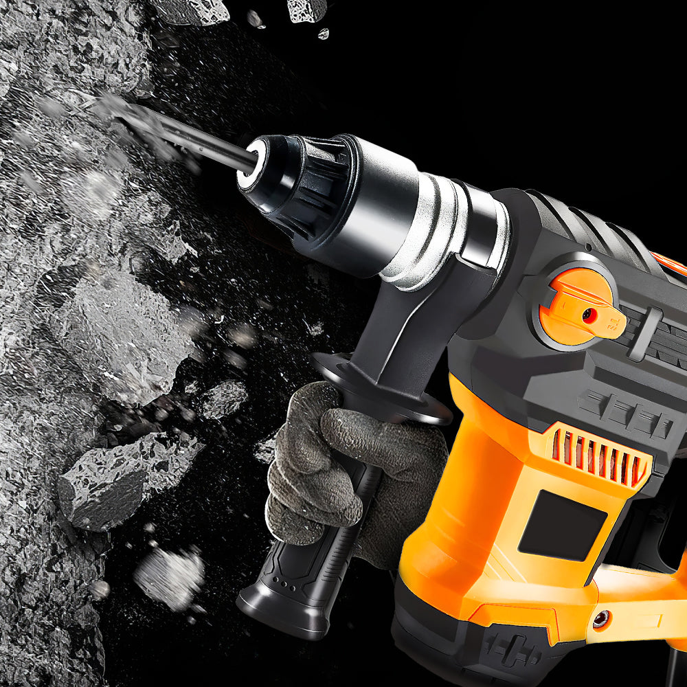 Handheld Rotary Hammer Drill 13A SDS-Plus 3-Mode with Bits & Chisels, Corded Electric