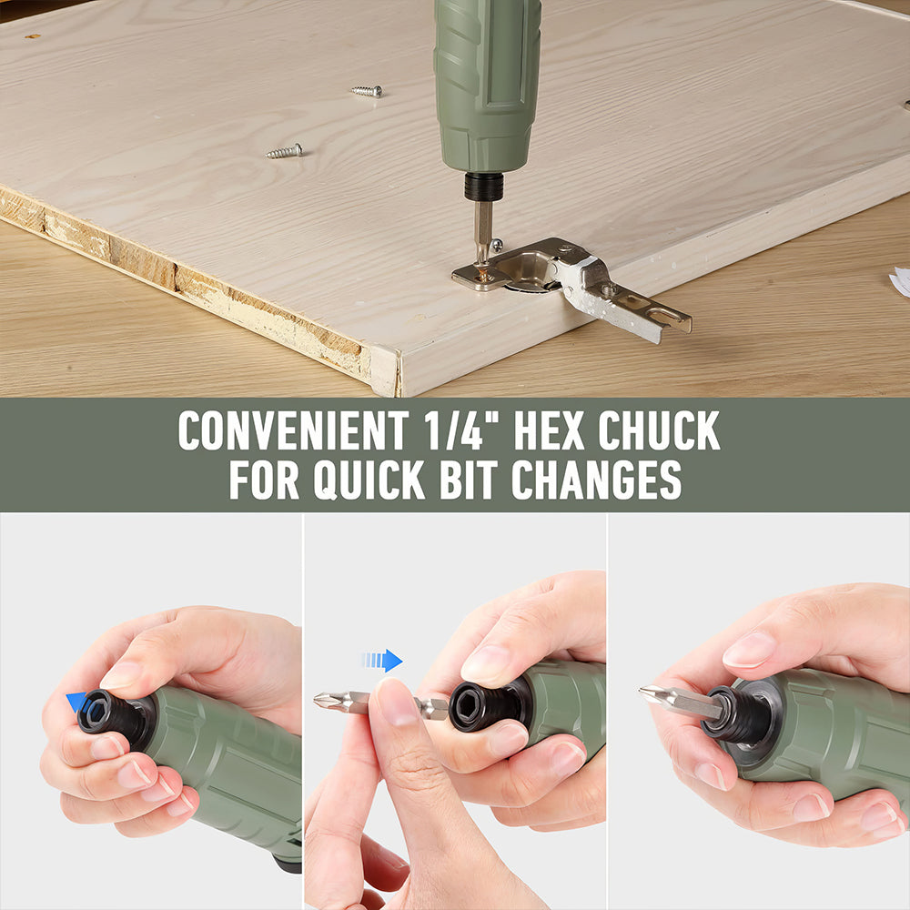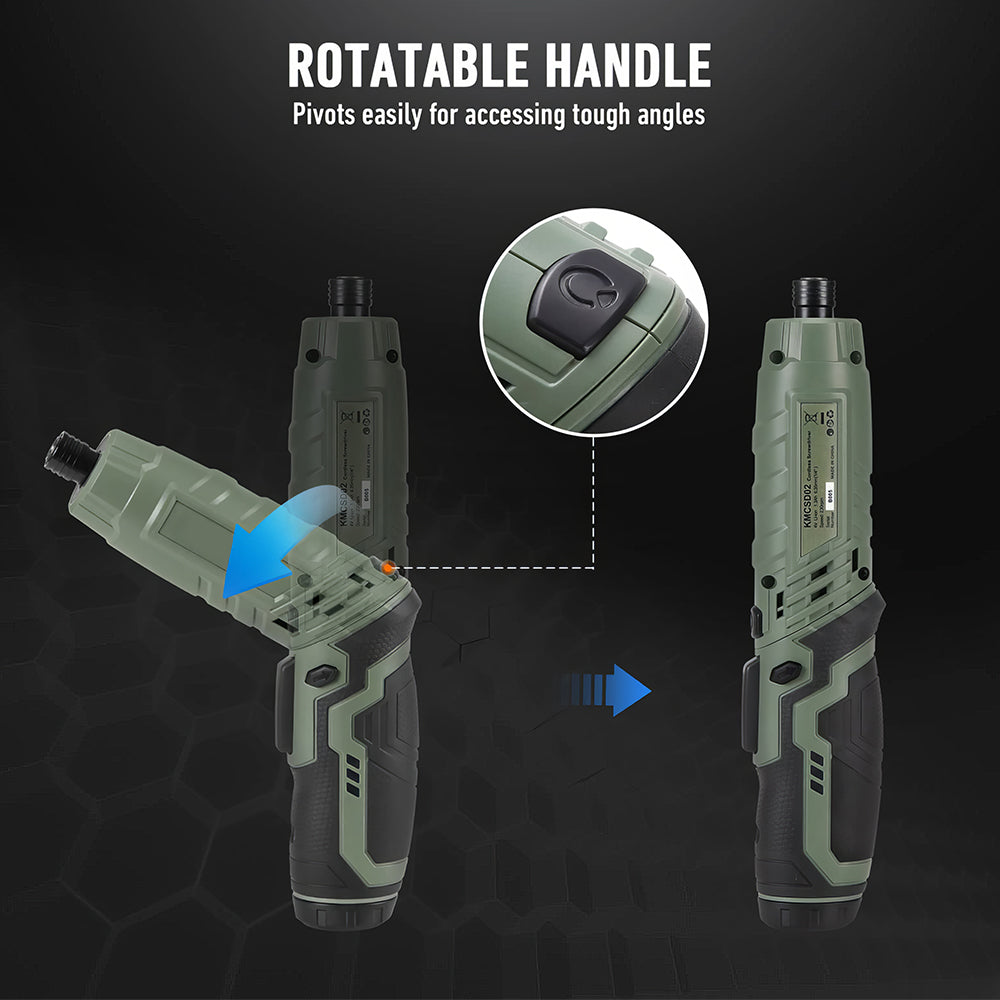 This 4V cordless electric screwdriver delivers up to 5Nm of torque and features an ergonomic two-position handle for comfortable use in tight or angled spaces. The built-in 1300mAh rechargeable battery ensures reliable power, while the included USB-C cable offers convenient recharging. With a full 39-piece accessory kit and bright LED lighting, this compact tool is perfect for assembly, repairs, and DIY tasks. Lightweight and easy to operate with one hand, it comes packed in a portable case for storage and travel.